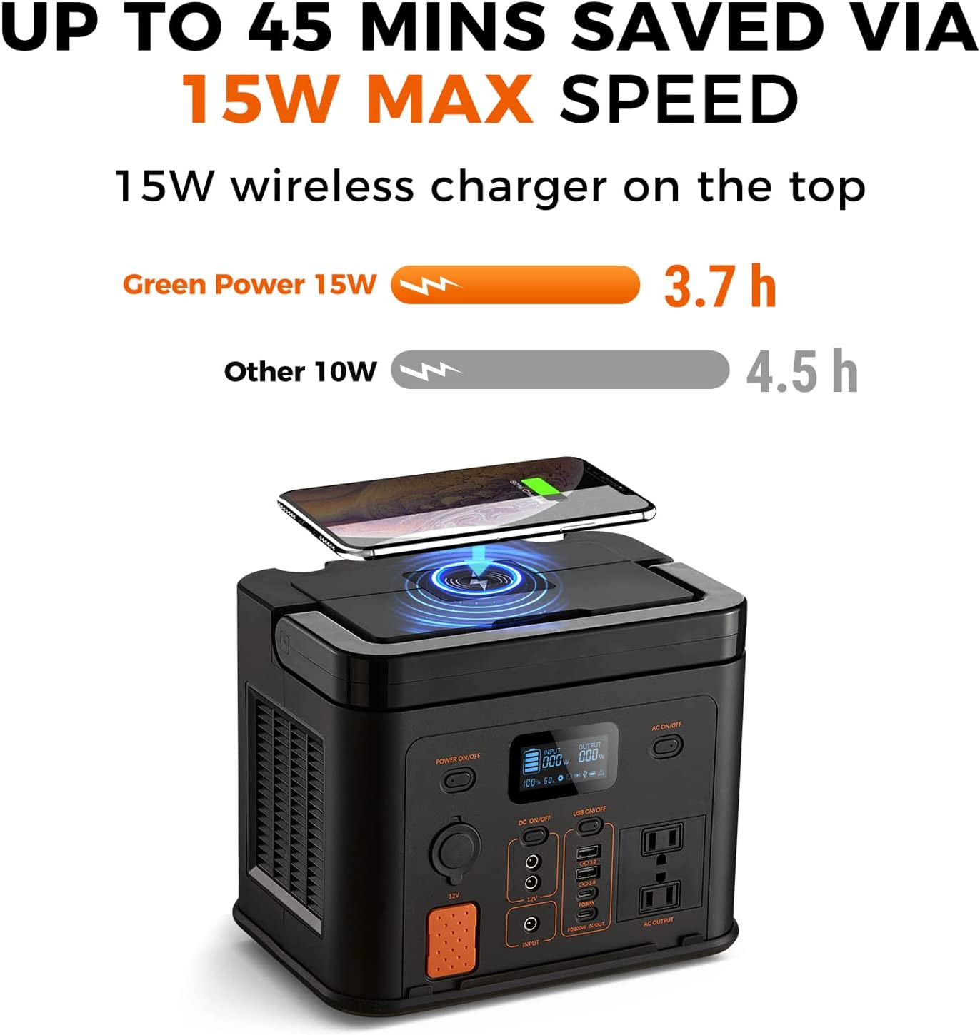 ���USB Interface USB, which stands for Universal Serial Bus, is a widely used serial bus standard in computer and mobile communication devices. The GREEN POWER Mars 320 model offers multiple USB interfaces, including USB-A Fast Charge ports and USB-C ports. The USB-A Fast Charge ports deliver up to 18W power output, supporting fast charging at 5V-3A, 9V-2A, and 12V-1.5A, making them suitable for various USB devices. The USB-C ports support multiple output modes, including 5/9V-3A, 12V-2.5A, 15V-2A, and 20V-5A, with a maximum power output of 30W, as well as 5/9/12/15V-3A and 20V-5A with a maximum power output of 100W.