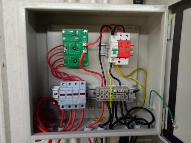 Connect the wire from solar panel to PV Array Combiner. Run the 4mm2 PV cables from the solar panels to PV Array Combiner, and cut it to length.
